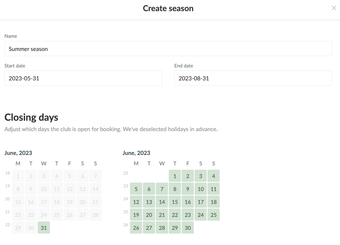 - You can also block certain dates. Your club is closed on Sundays? No problem, you can disable booking for the resources.