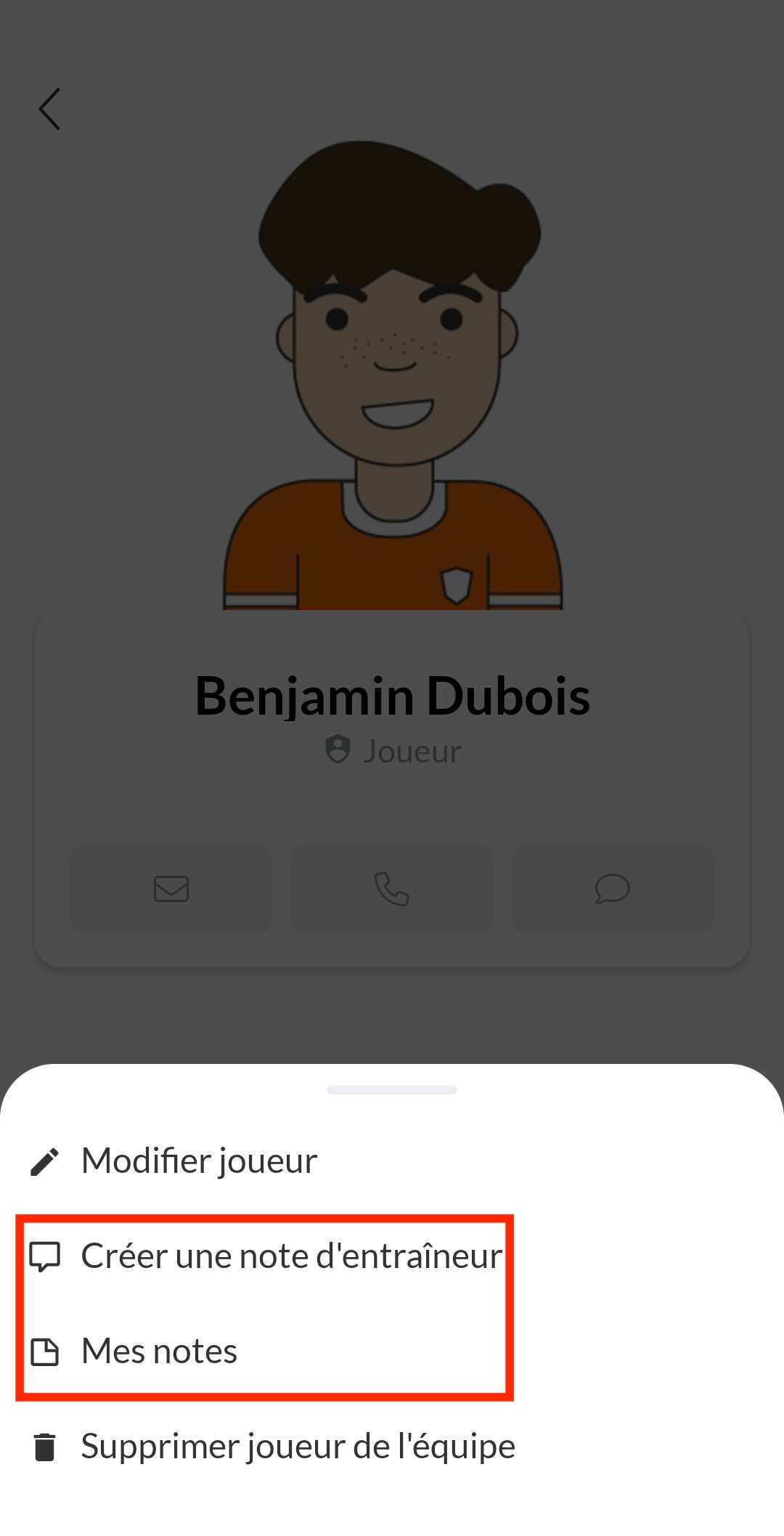 - Appuyer sur la personne pour laquelle vous souhaitez écrire une note d'entraîneur/une note privée.