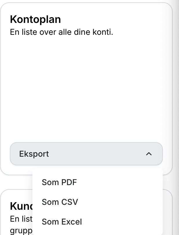 Vælg hvilket format, du ønsker at downloade kontoplanen i.