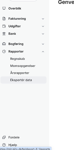 I menuen i venstre side vælges Rapporter - Eksportér data