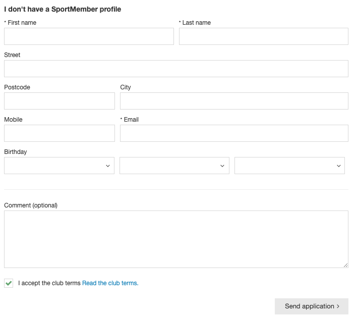 - The club's own terms and conditions, which all members must read and accept in order to use SportMember/join the club