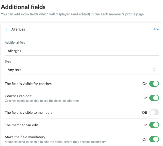 - Each club has 2 optional fields (Holdsport PRO gives you unlimited number)