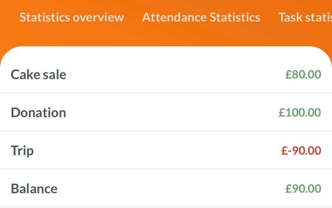 You register income by clicking on the green button Register income, entering a title and the amount and it will appear in the team box. You can register expenses under More.