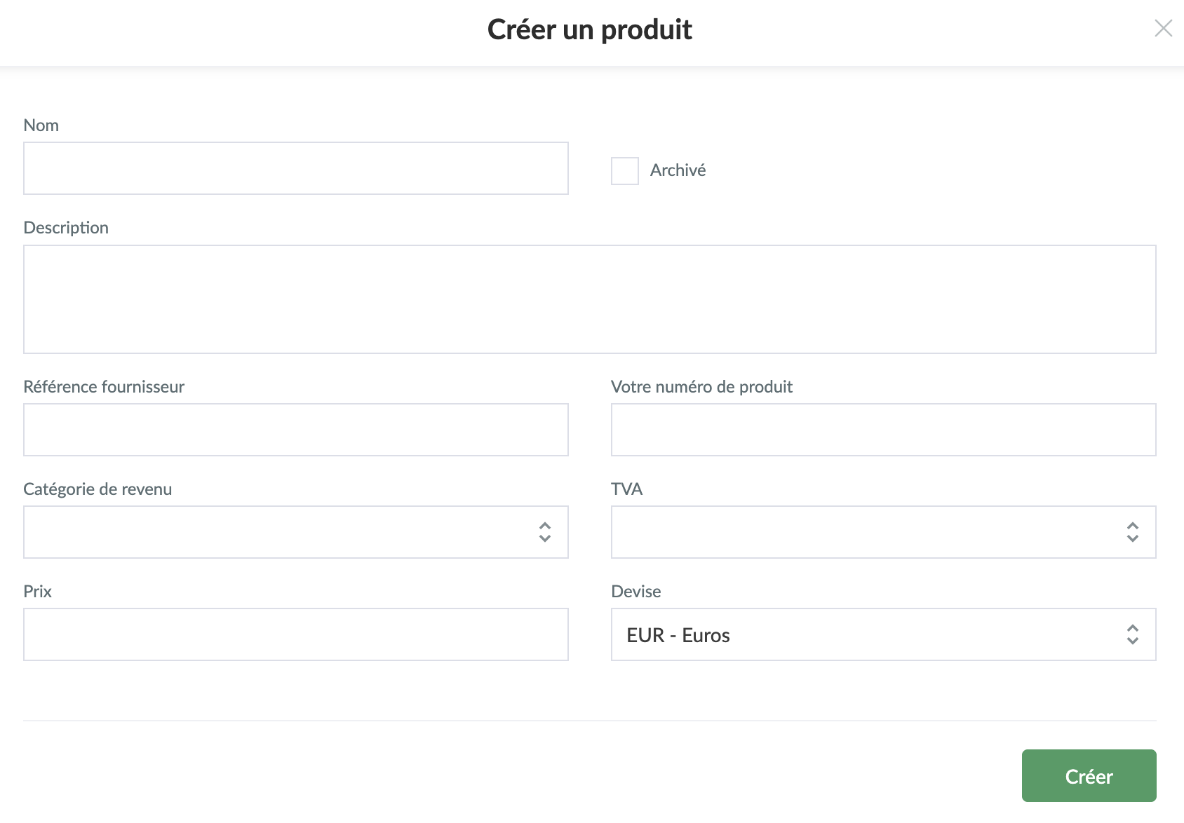 - TVA : Indiquer si le produit est soumis ou non à la TVA.